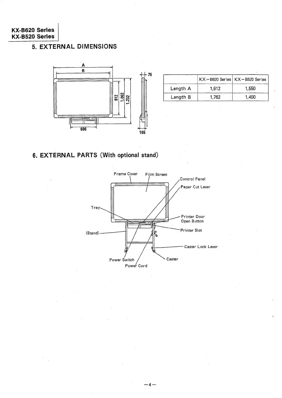 Panasonic KX-B620 - External Dimensions