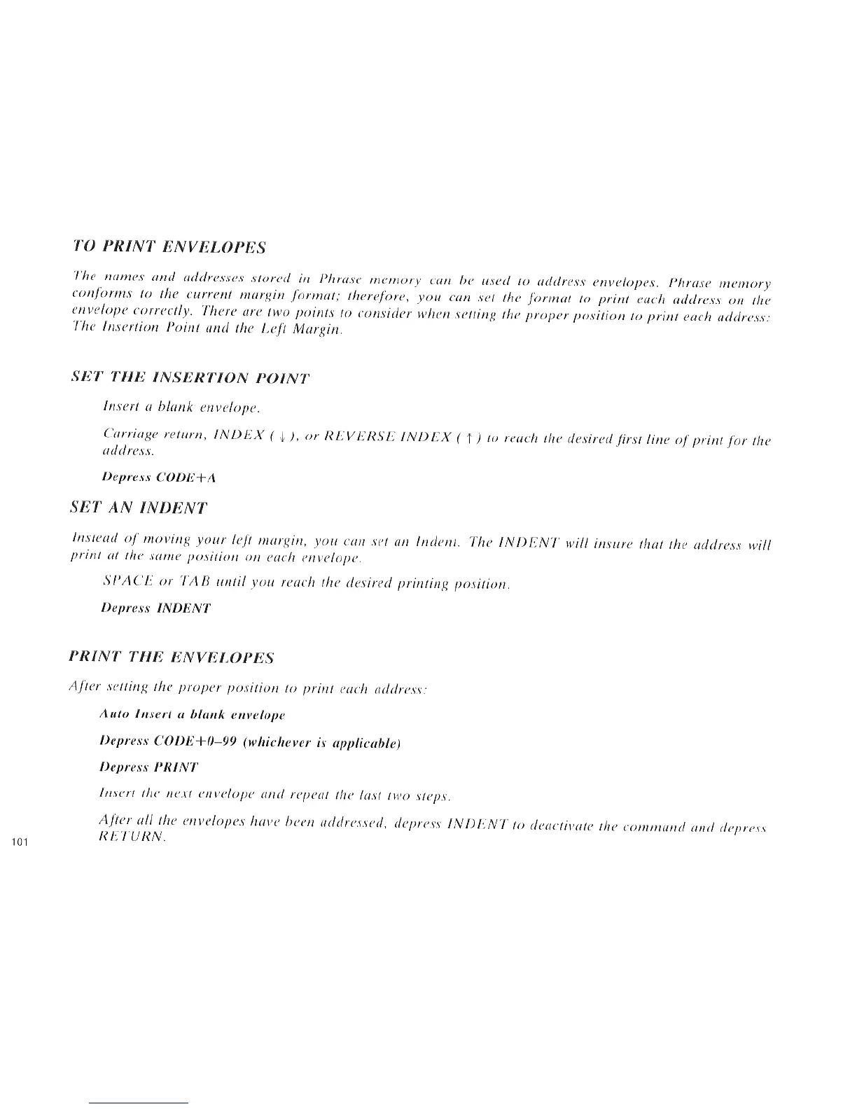 Panasonic KX-E50 - To Print Envelopes; Set the Insertion Point; Sea an Indent; Print the Envelopes