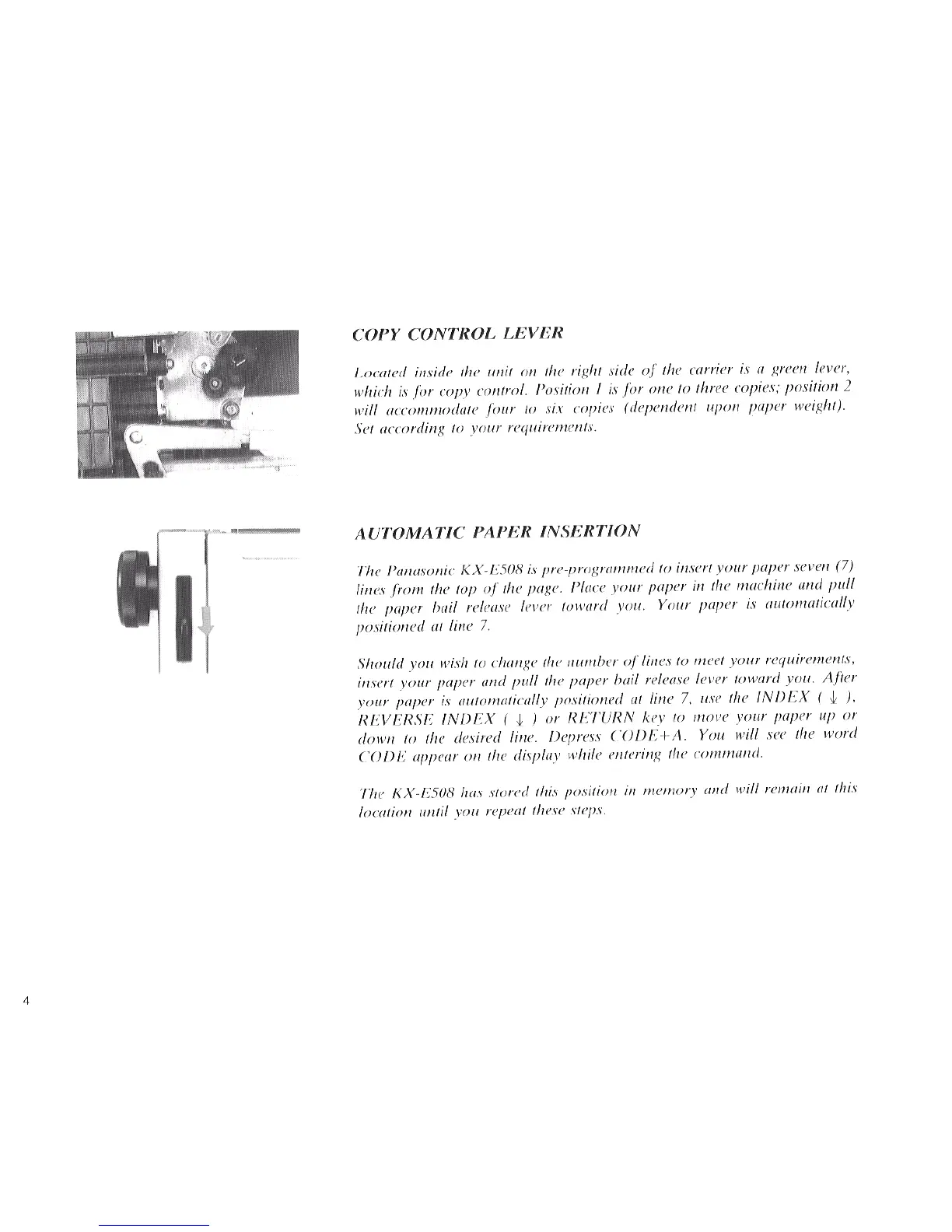 Panasonic KX-E50 - Copy Control Lever; Automatic Paper Insertion