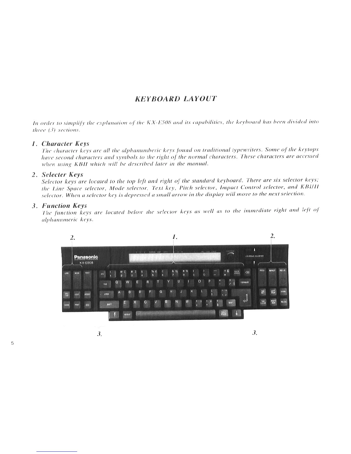 Panasonic KX-E50 - Keyboard Layout; Character Keys; Selector Keys; Function Keys
