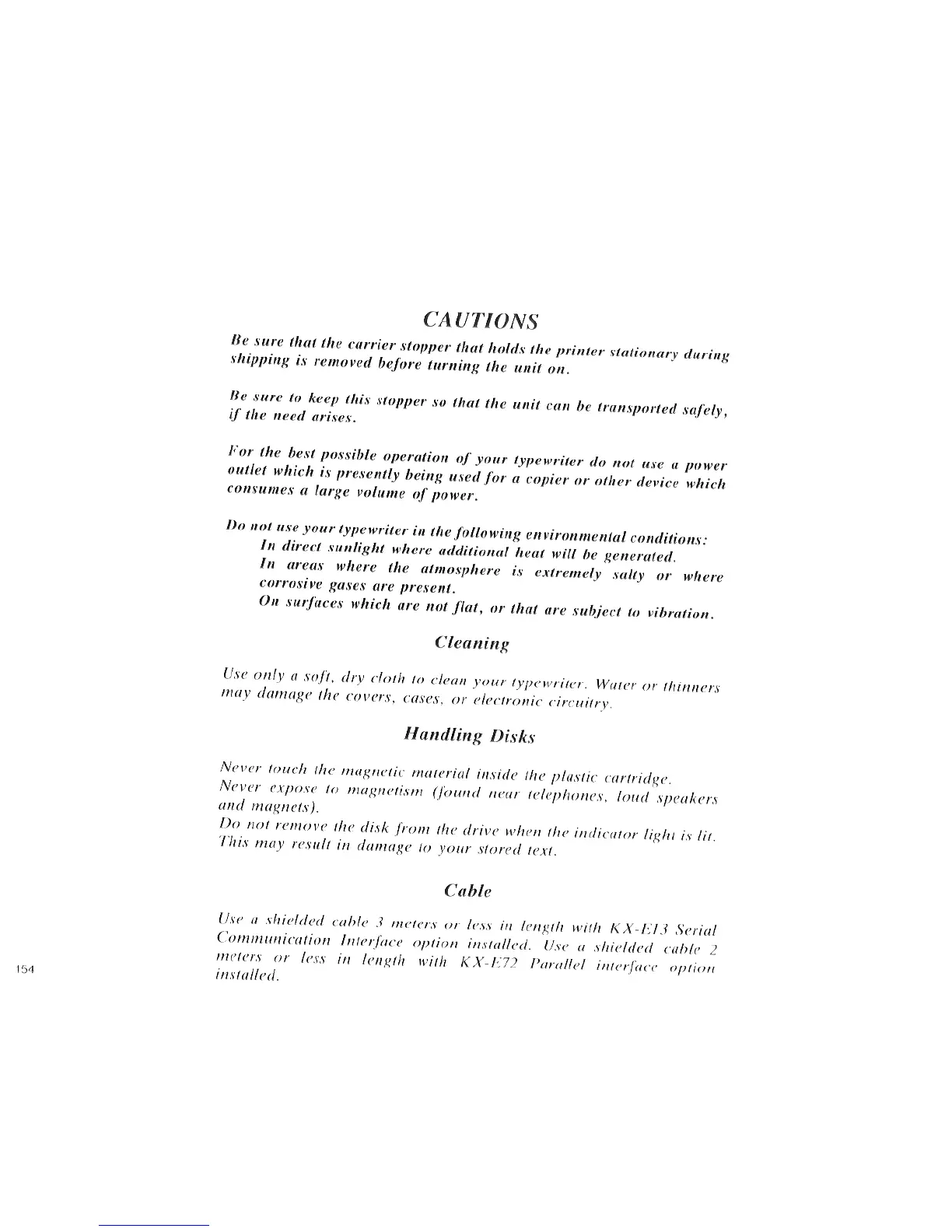 Panasonic KX-E50 - Cautions; Cleaning; Handling Disks; Cable