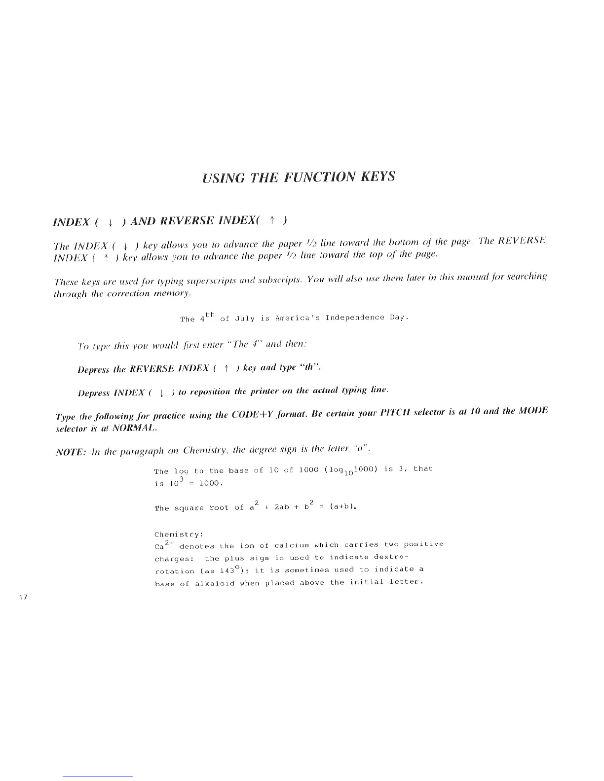 Panasonic KX-E50 - Using the Function Keys; Index and Reverse Index