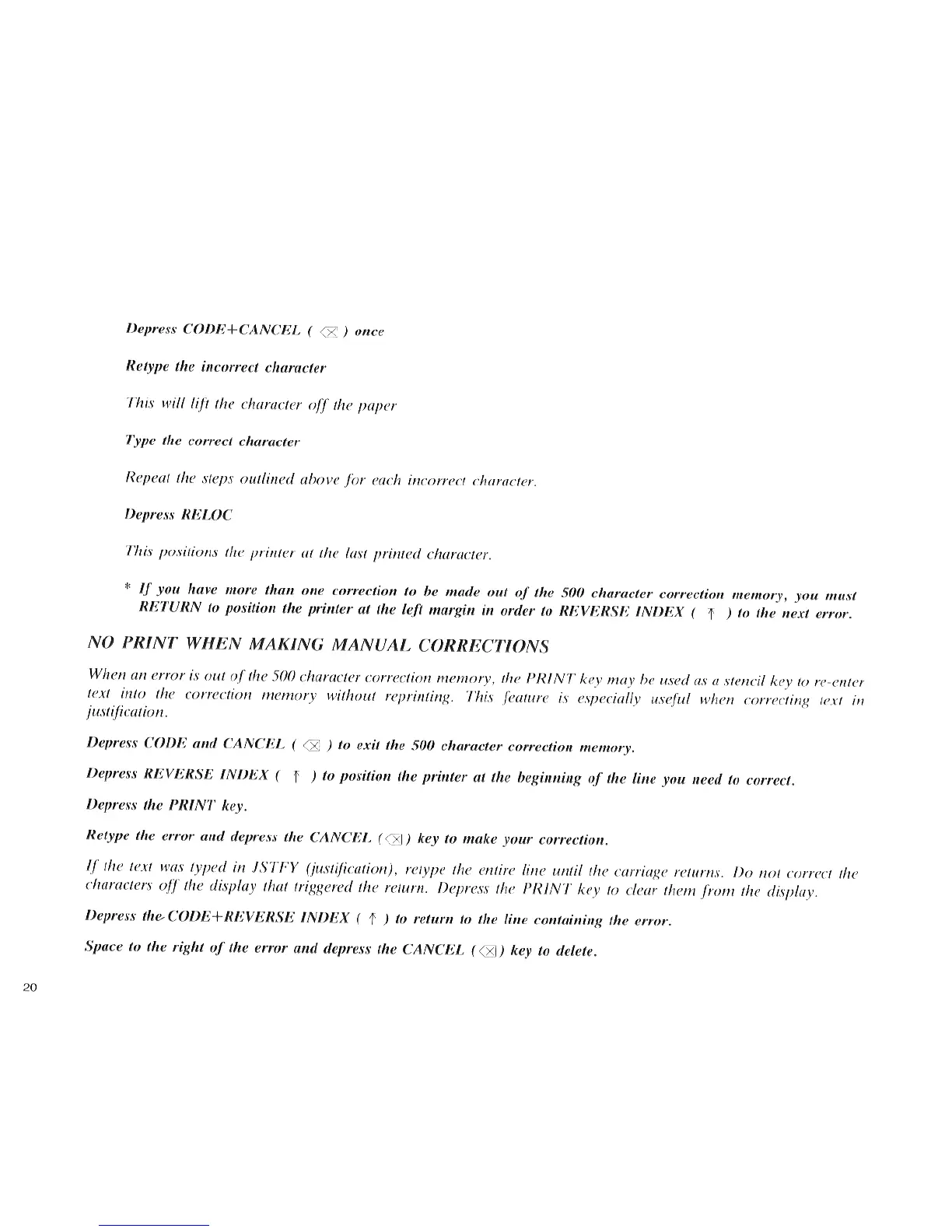 Panasonic KX-E50 - No Print When Making Manual Corrections