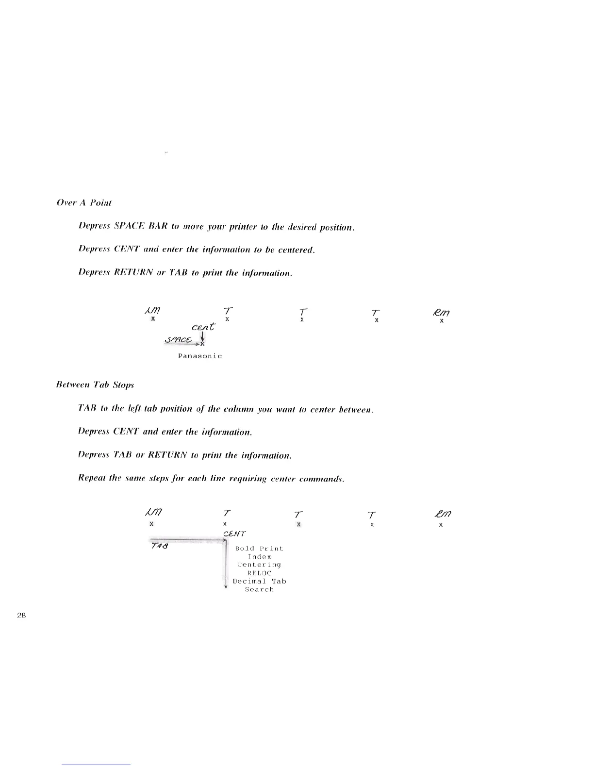 Panasonic KX-E50 - Over a Point; Between Tab Stops