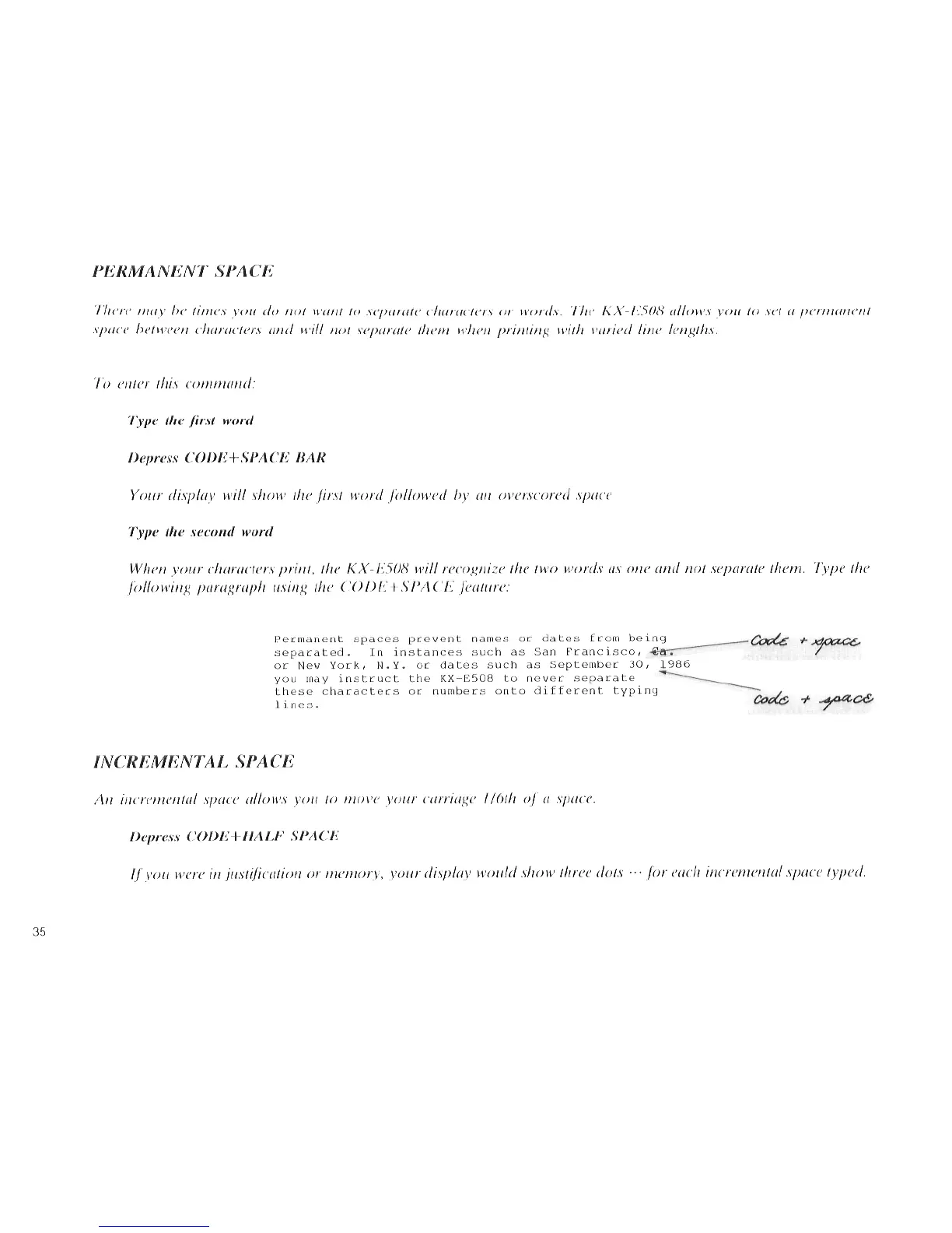 Panasonic KX-E50 - Permanent Space; Incremental Space
