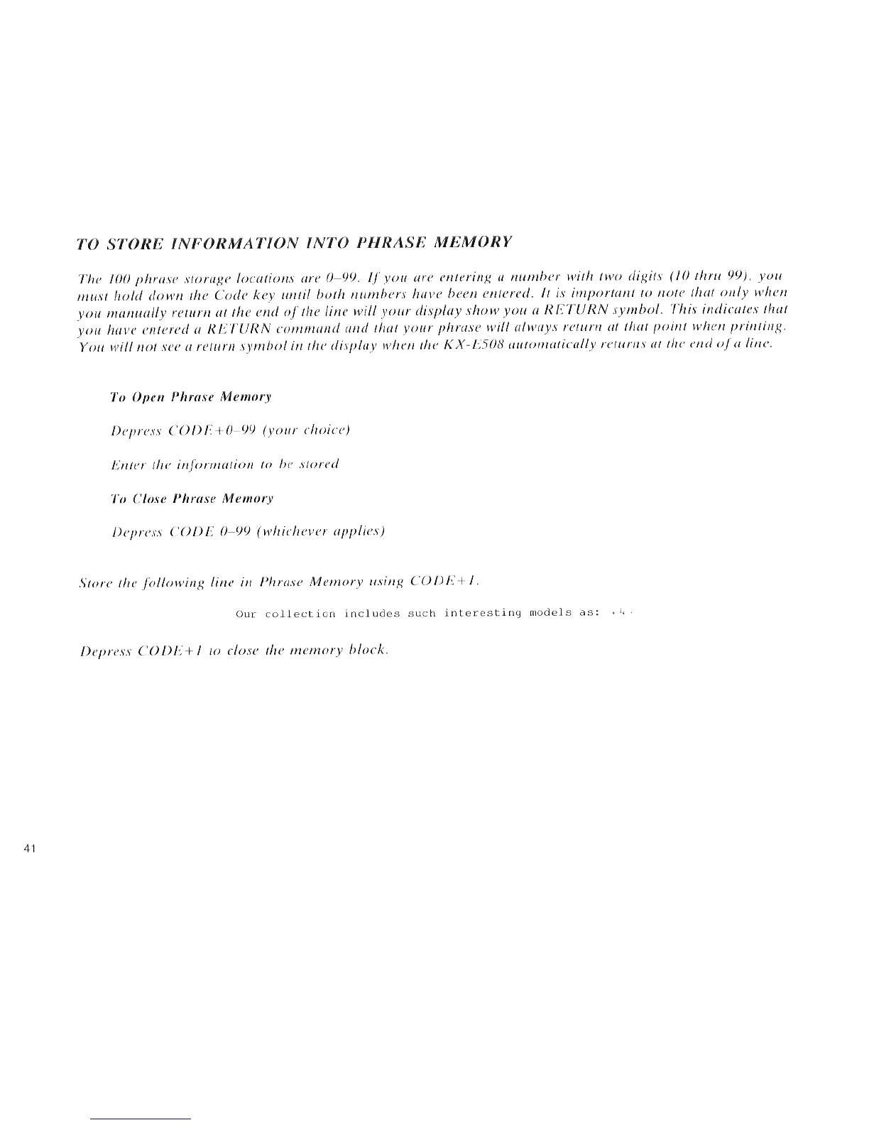 Panasonic KX-E50 - To Store Information into Phrase Memory