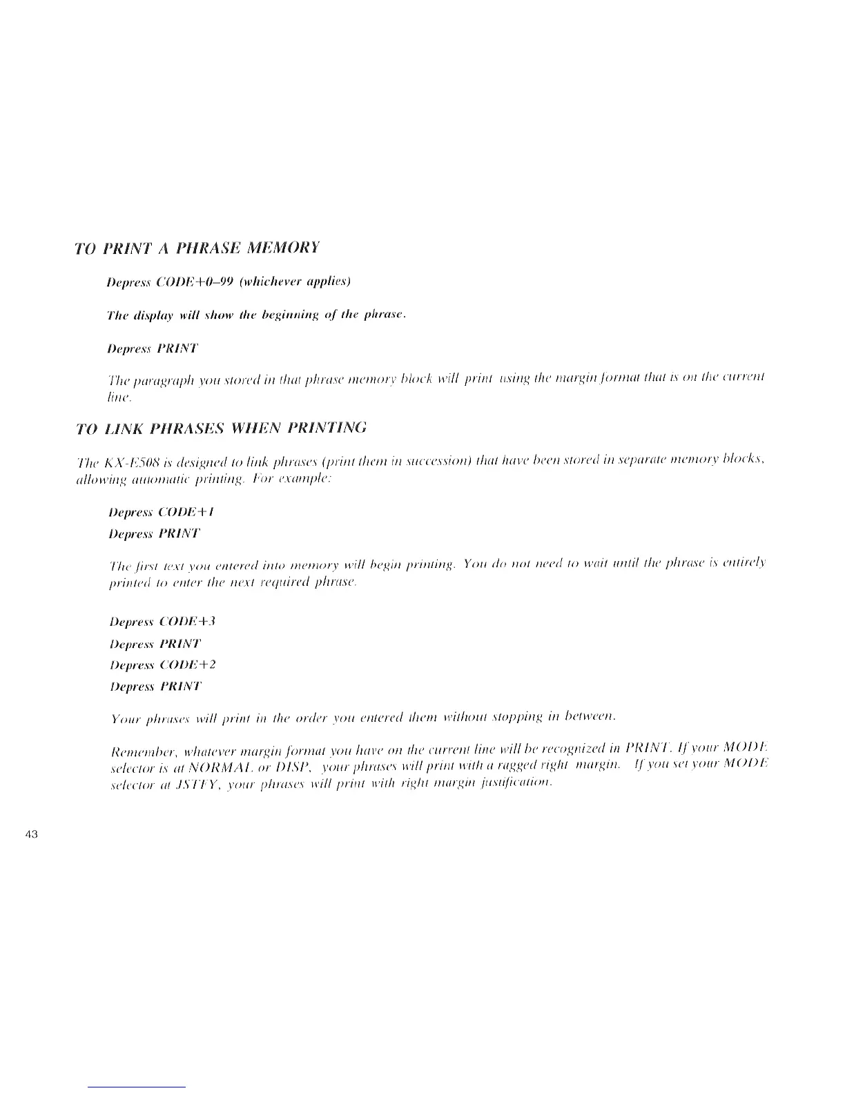 Panasonic KX-E50 - To Print a Phrase Memory; To Link Phrases When Printing