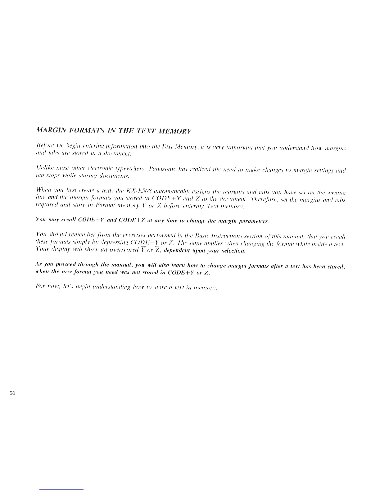 Panasonic KX-E50 - Margin Formats in the Text Memory