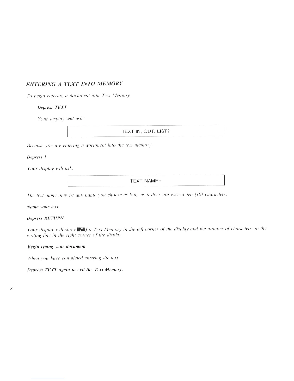 Panasonic KX-E50 - Entering a Text into Memory