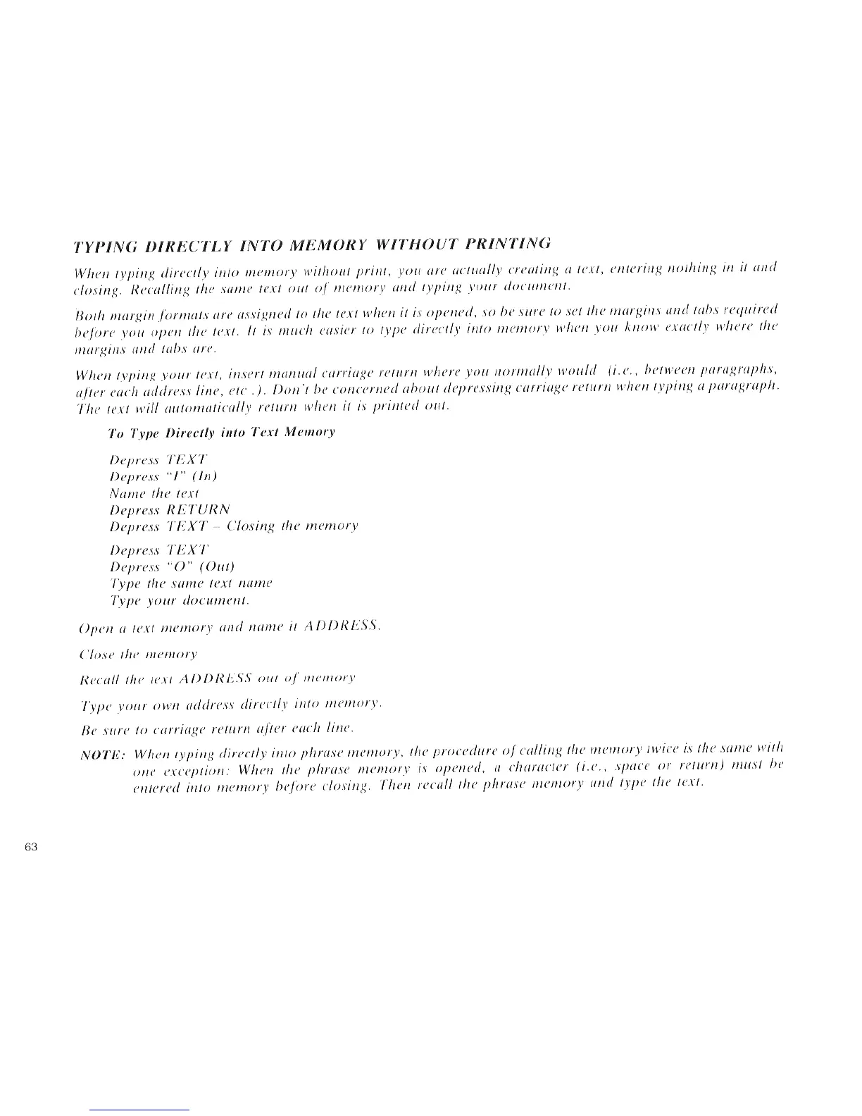 Panasonic KX-E50 - Typing Directly into Memory Without Printing