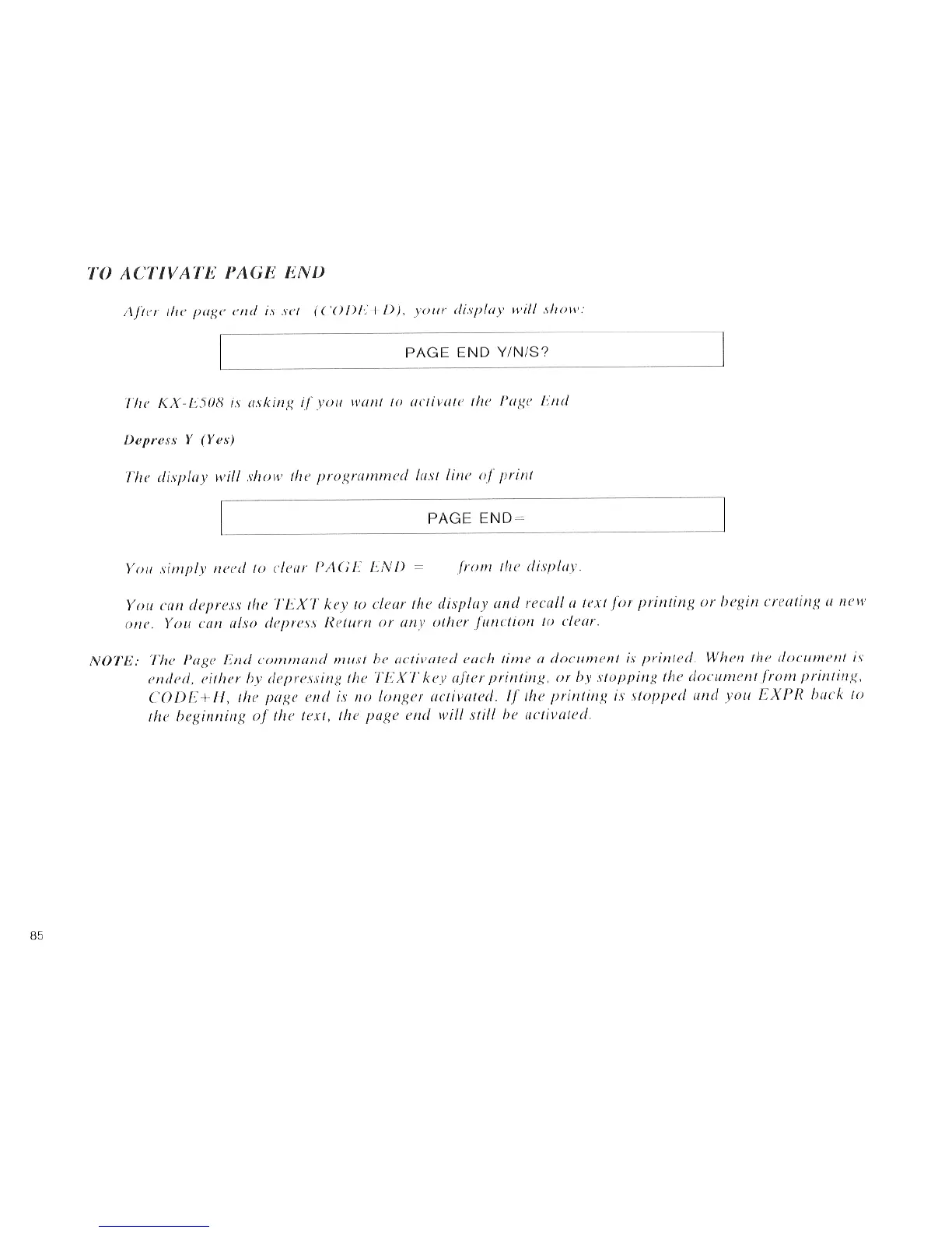 Panasonic KX-E50 - To Activate Page End