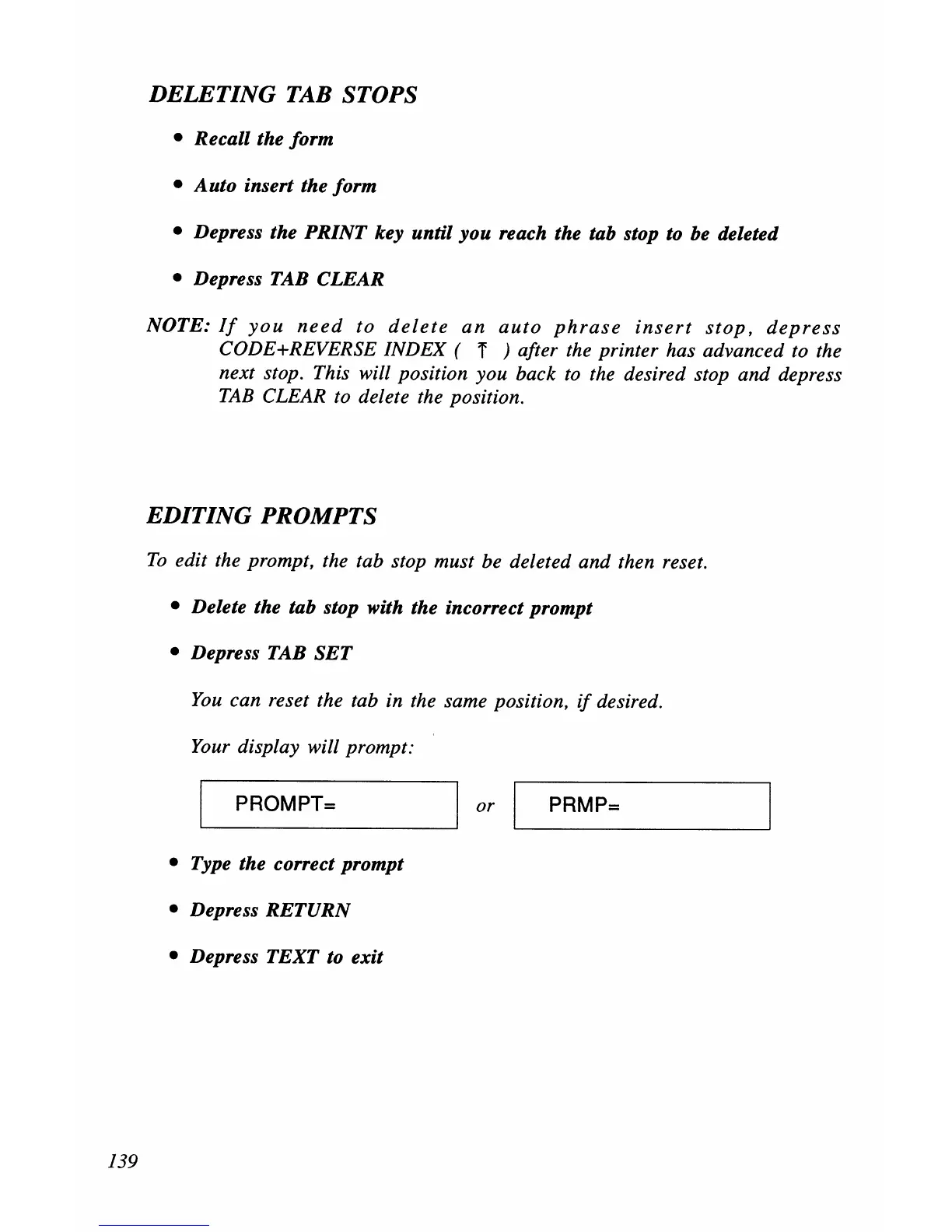 Panasonic KX-E7000 - Deleting Tab Stops; Editing Prompts