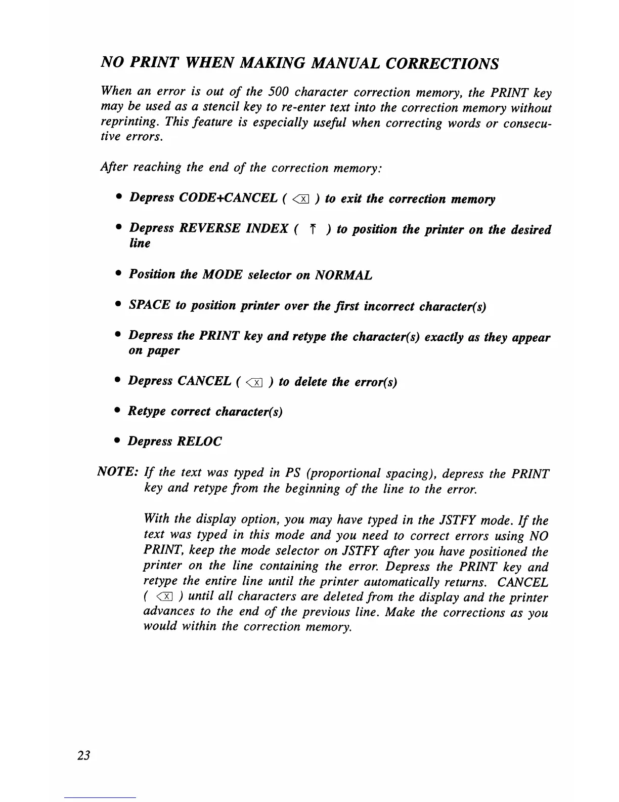 Panasonic KX-E7000 - No Print When Making Manual Corrections; Coded Functions; CODE KEY; Expand Print