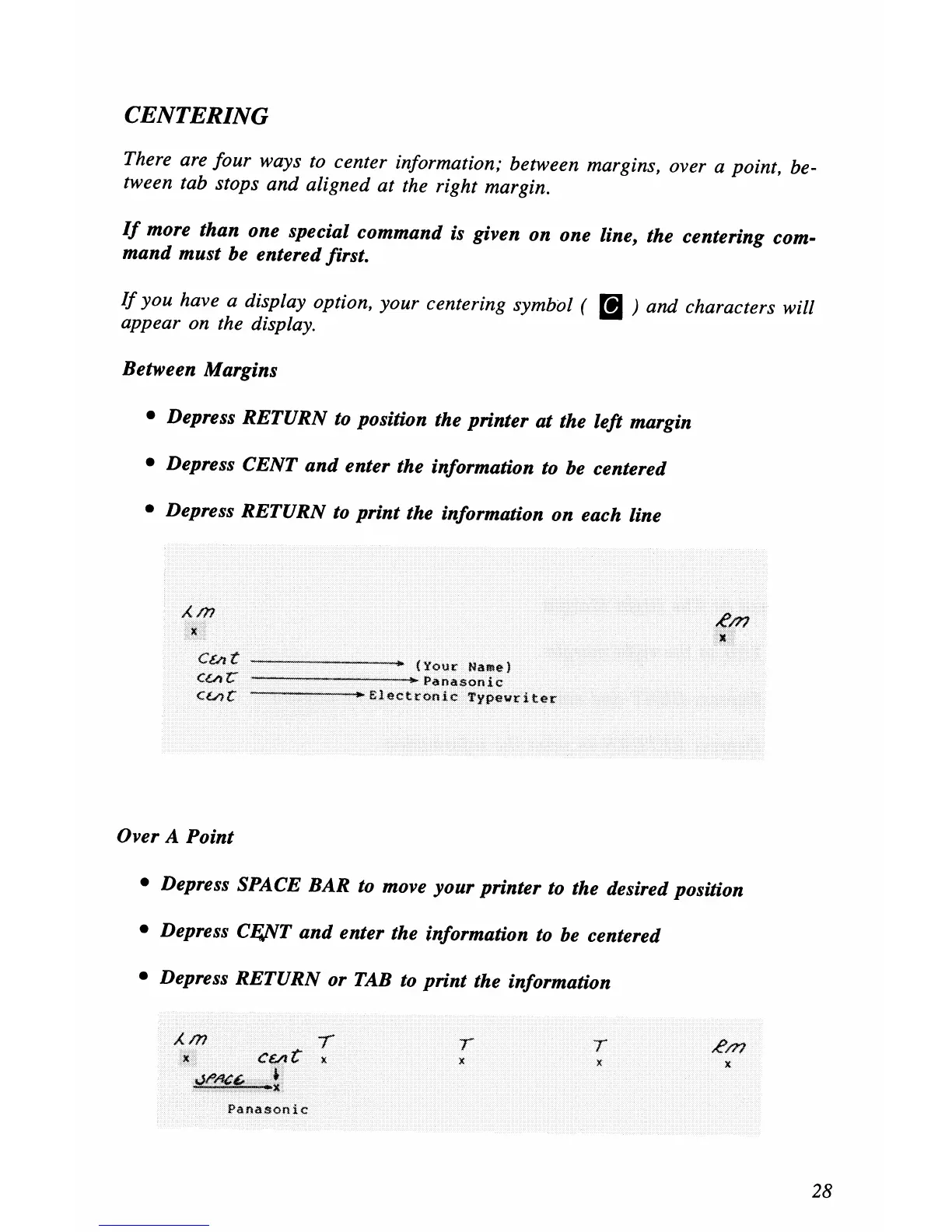 Panasonic KX-E7000 - Centering; Forms Layout on a Non-Memory Machine