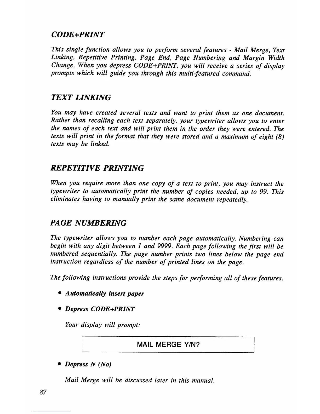 Panasonic KX-E7000 - Code+Print; Text Linking; Repetetive Printing; Page Numbering