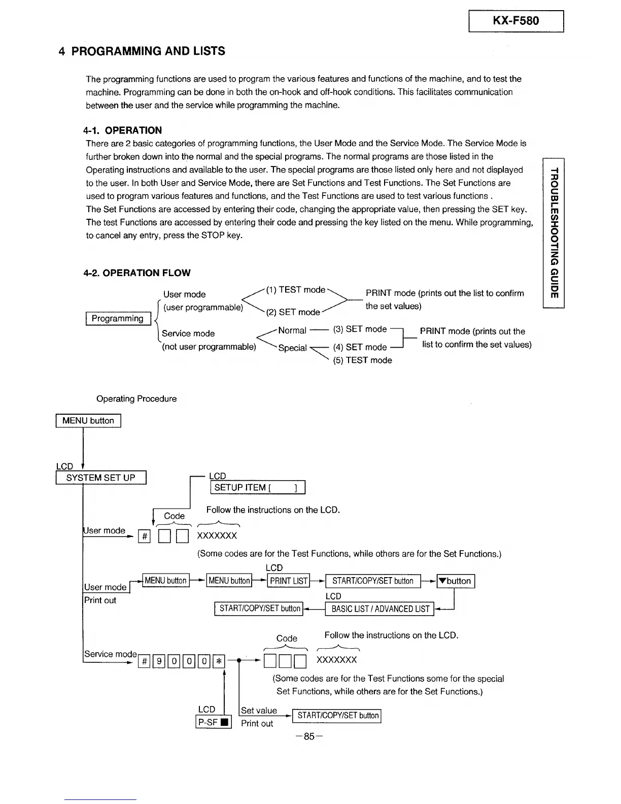 Panasonic KX-F780 - Programming and Lists
