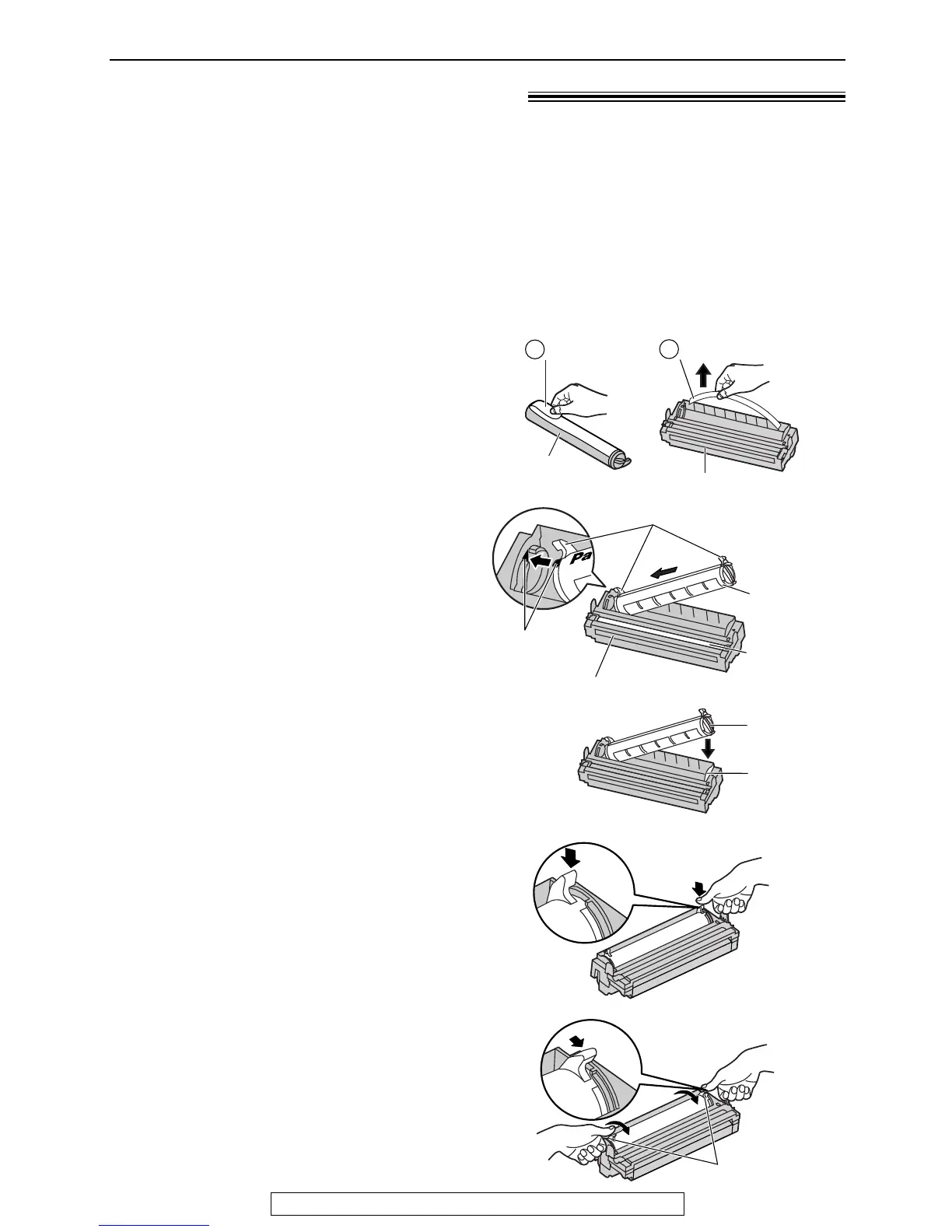 open the drum unit protection bag. The drum unit contains a photosensitive drum.