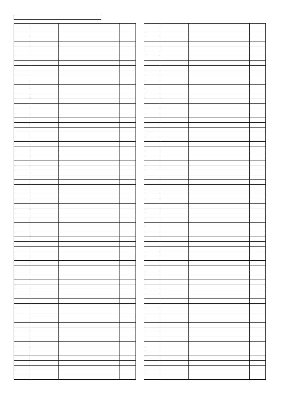 Part No. Part Name & Description Remarks