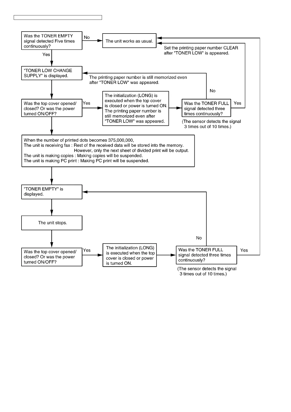2. Toner full can be judged by continuous 3-times TONER FULL signal at initialization.