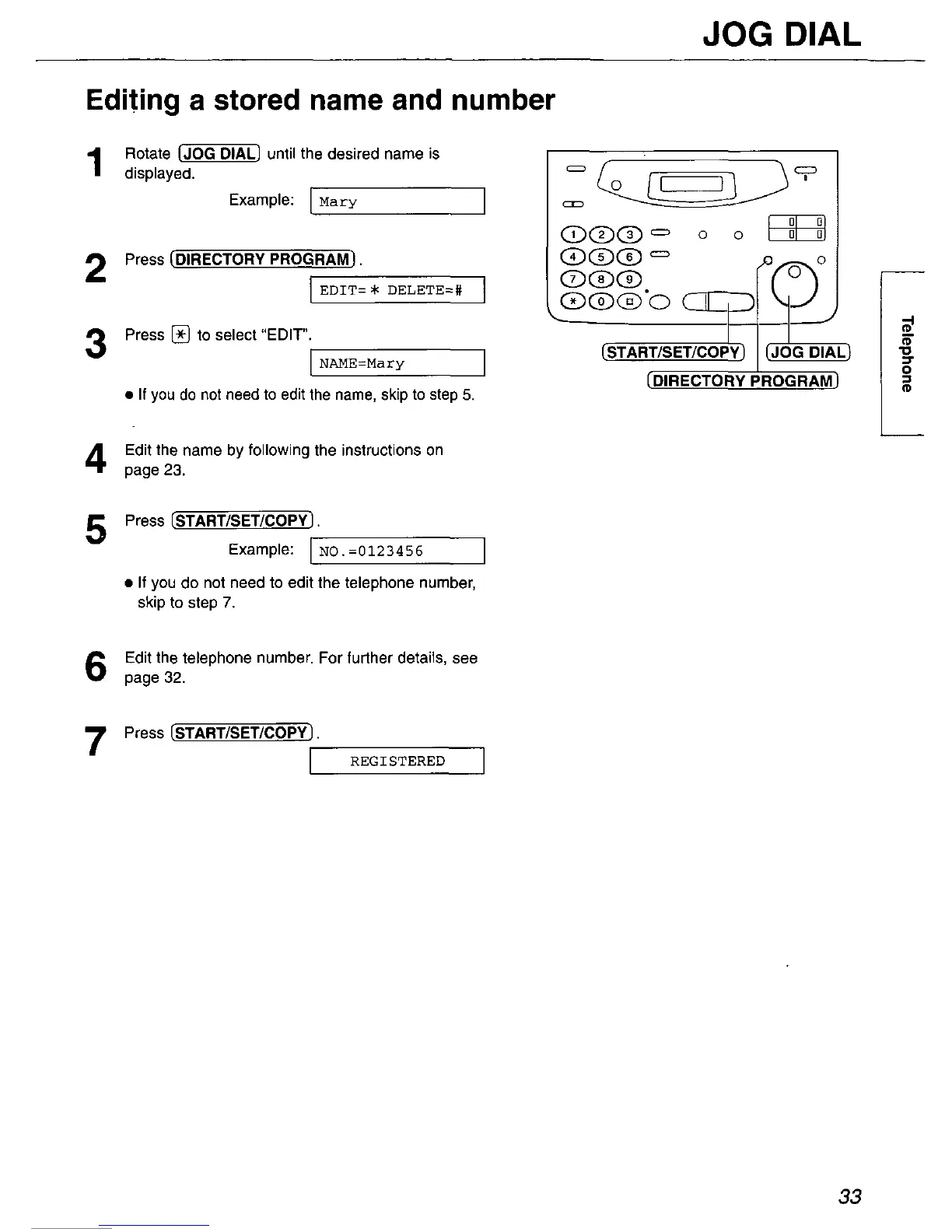 Panasonic KX-FP101 - Editing a Stored Name and Number