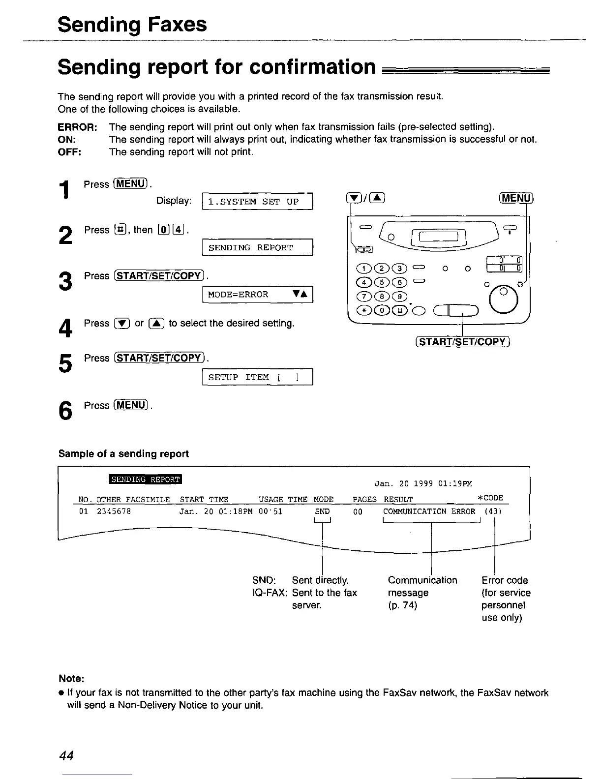 Panasonic KX-FP101 - Sending Report for Confirmation; Sample of Sending Report