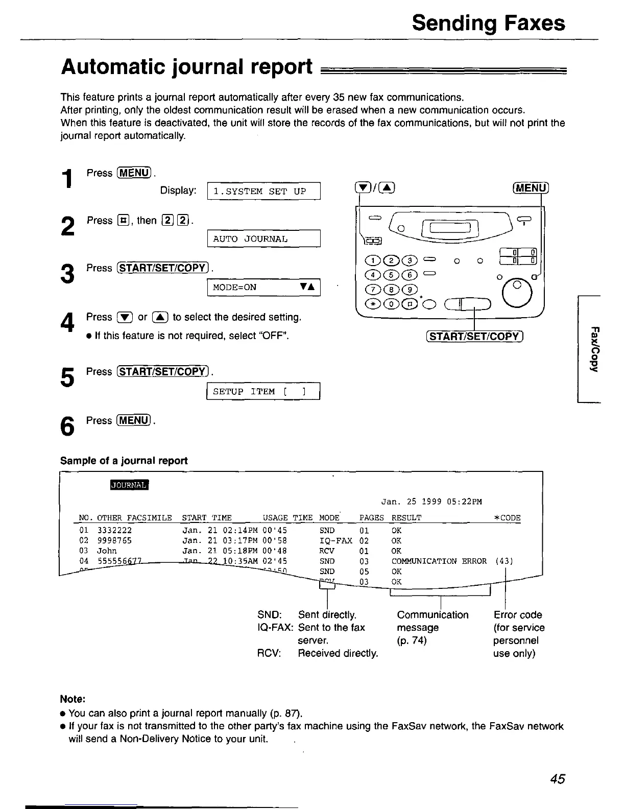 Panasonic KX-FP101 - Automatic Journal Report; Sample of a Journal Report