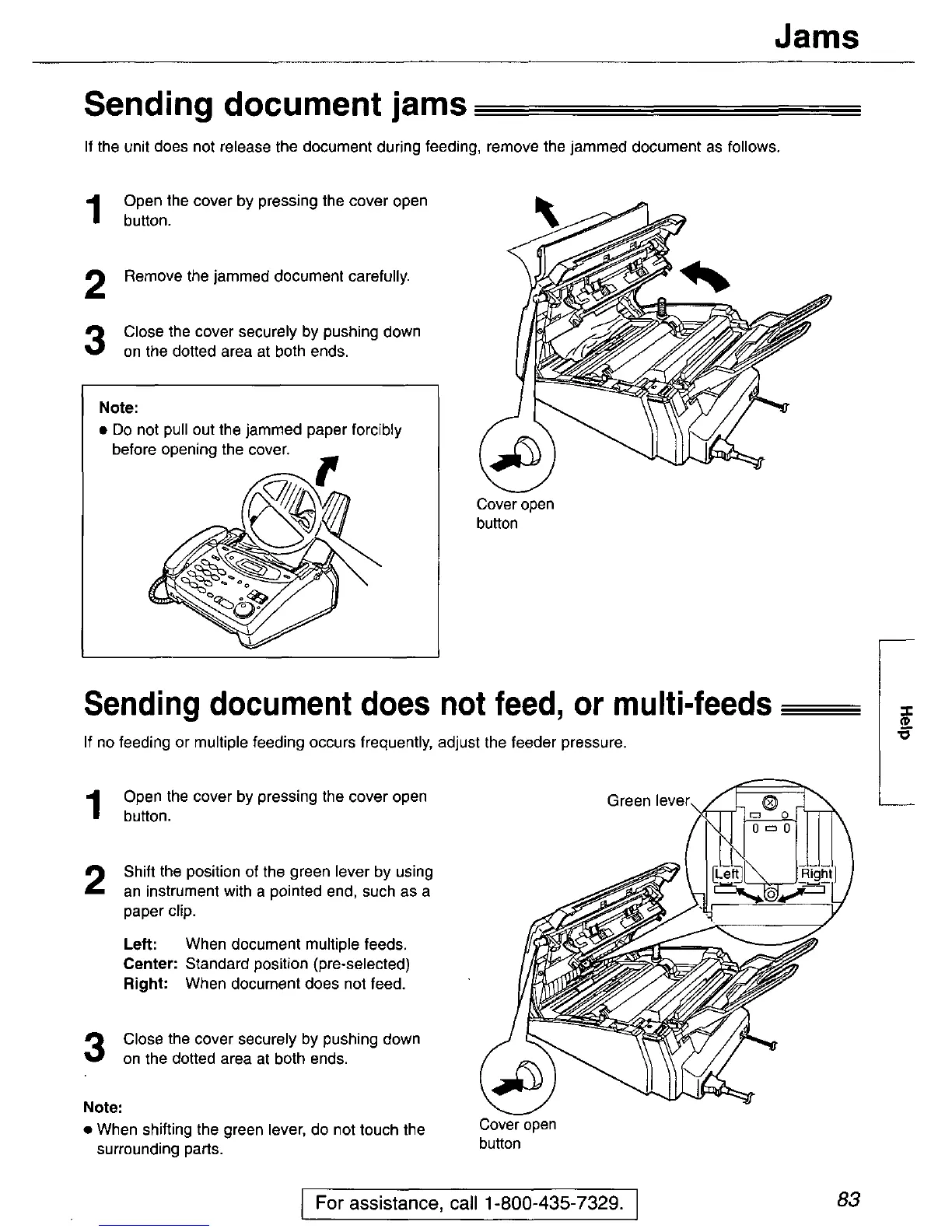 Panasonic KX-FP101 - Sending Document Jams; Sending Document Does Not Feed, or Multi-Feeds