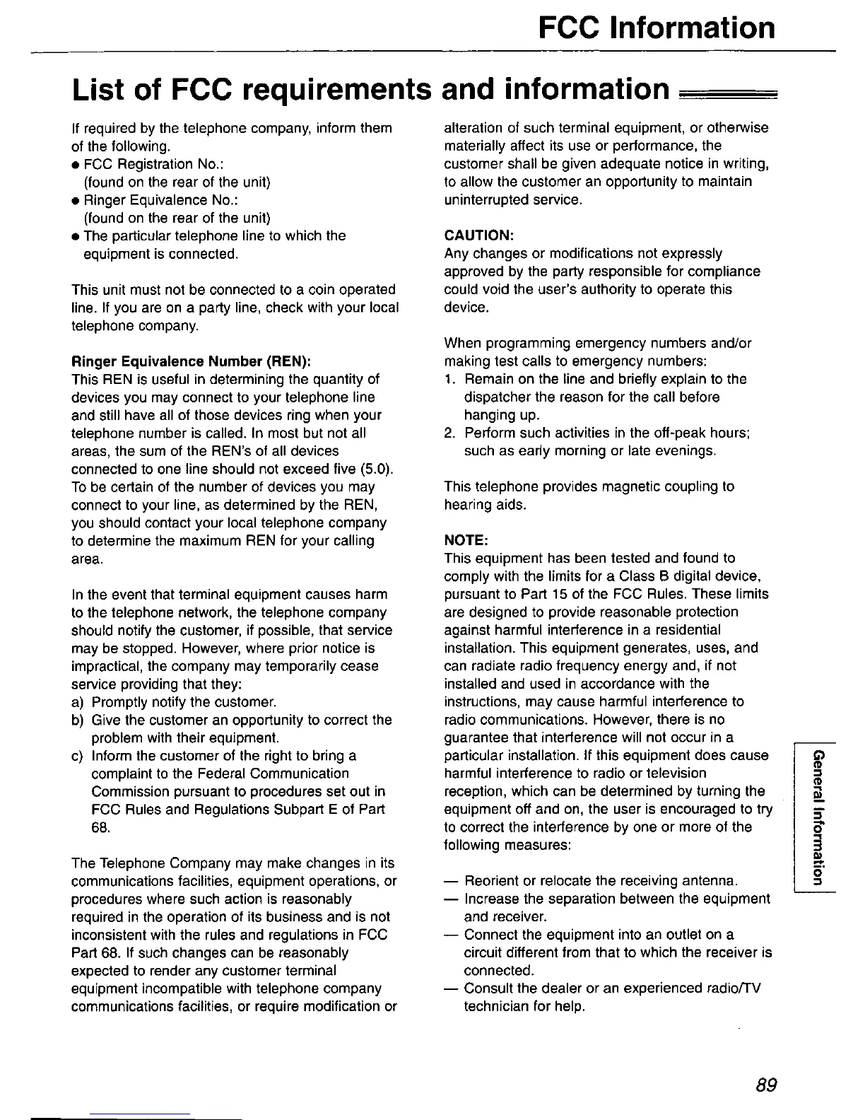 Panasonic KX-FP101 - FCC Information; List of FCC Requirements and Information