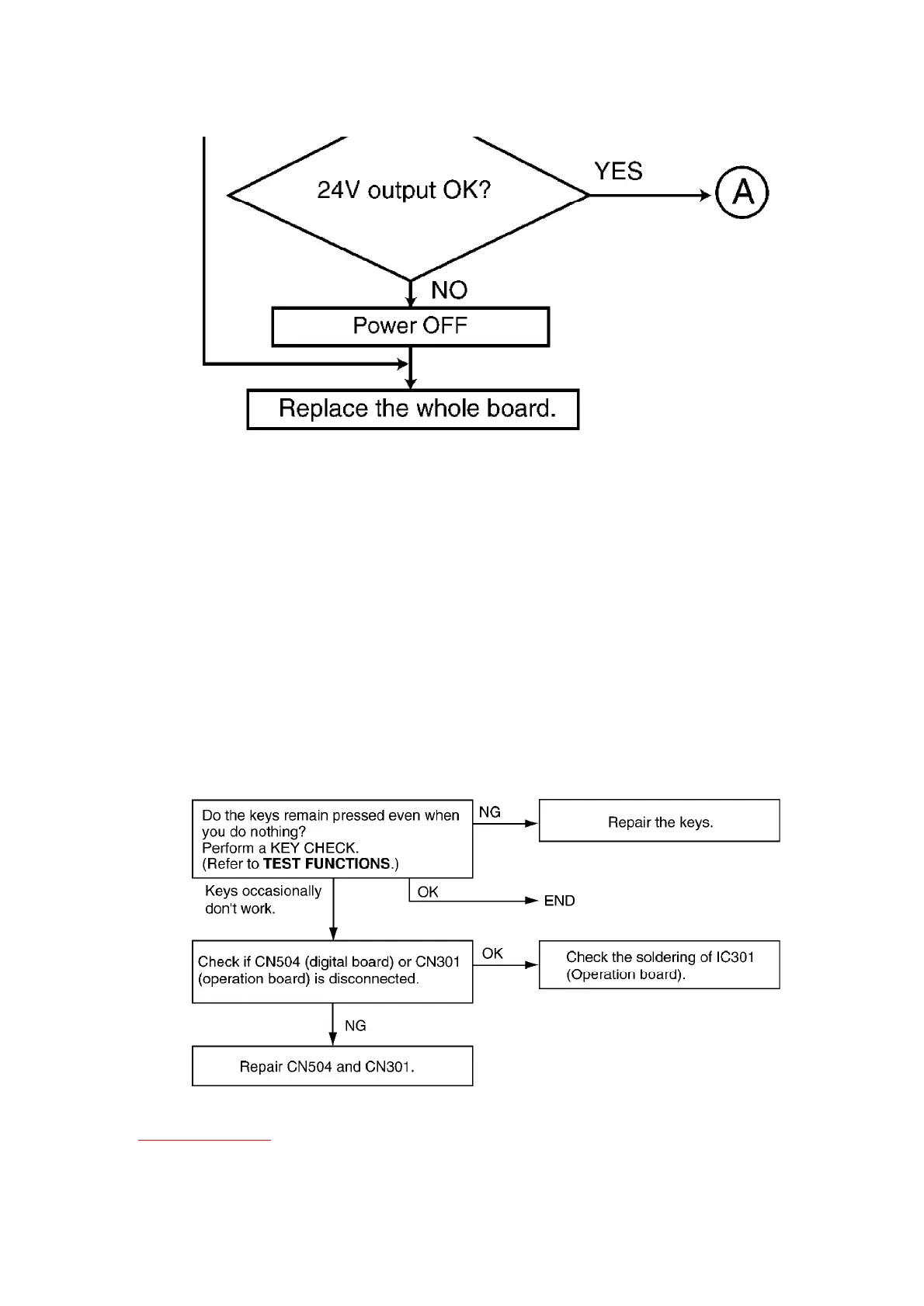 If D201 is broken, the oscillation circuit in the power supply cannot operate. Check it with an