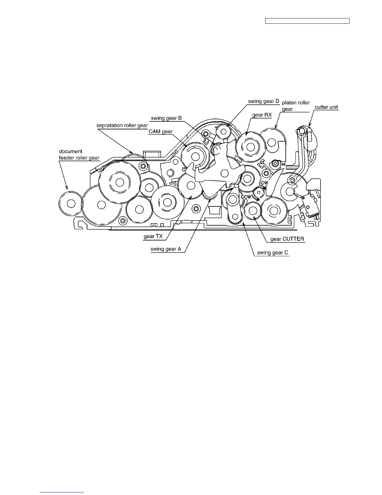 This section shows how the motor-driven gear mechanism works in the main operations: FAX transmission, FAX reception the