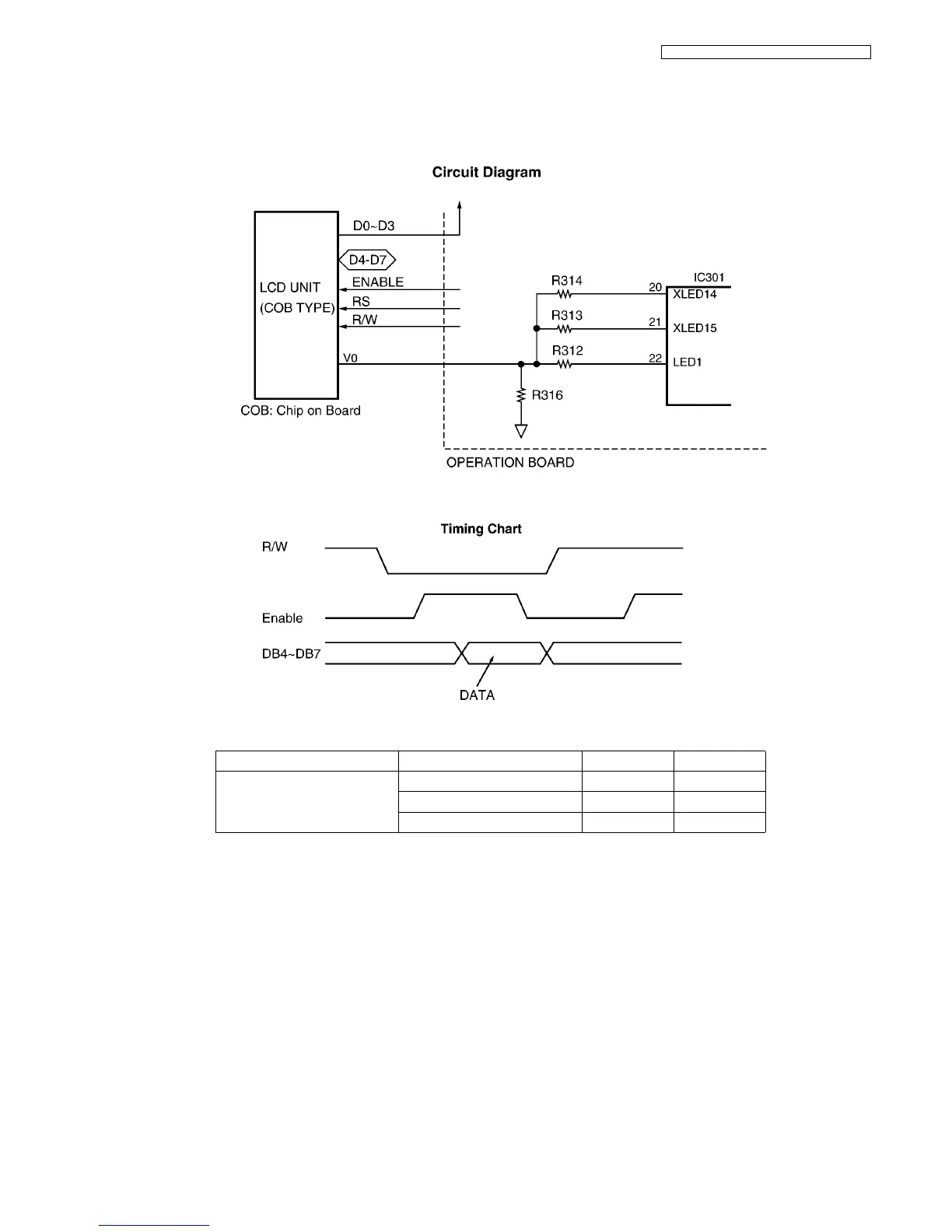 The Gate Array IC(IC301) works only for writing the ASCII code from the data bus (D4~D7). V0 is supplied for the crystal drive.