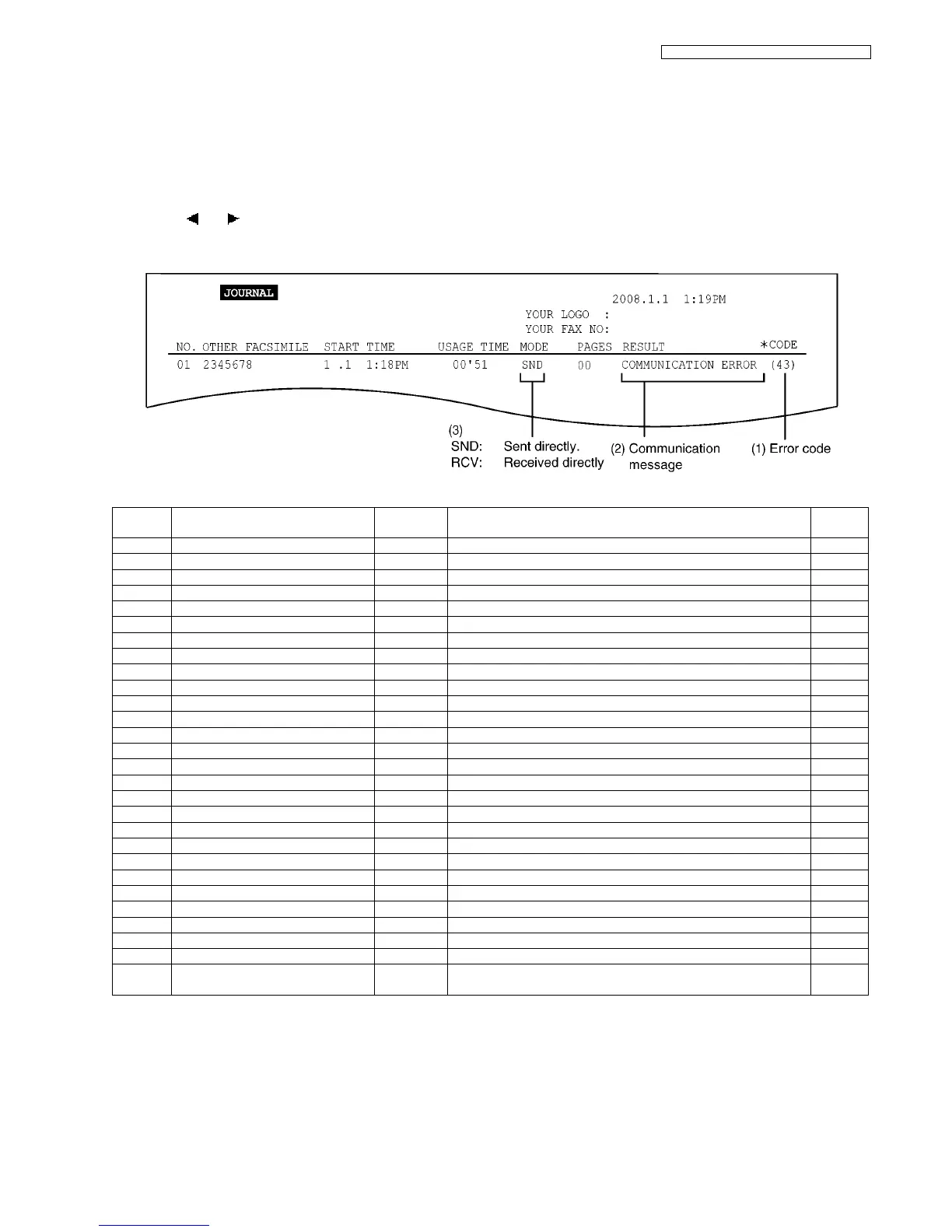 65 COMMUNICATION ERROR RCV Reception is not EOP, EOM PIP, PIN, RTP or RTN. 2