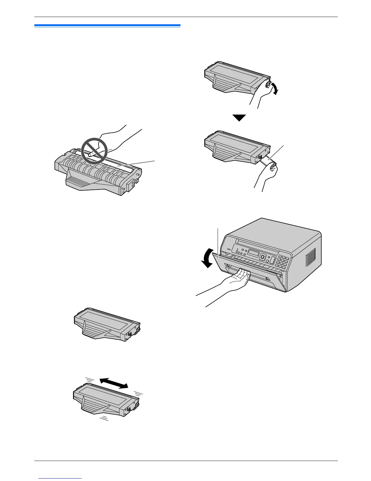 2 Shake the toner cartridge horizontally more than 5