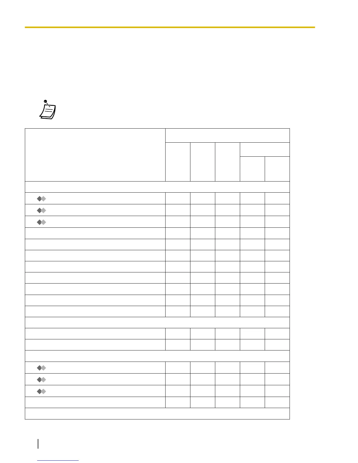 The features that each type of telephone supports are marked with a ü. Features without a ü for a certain
