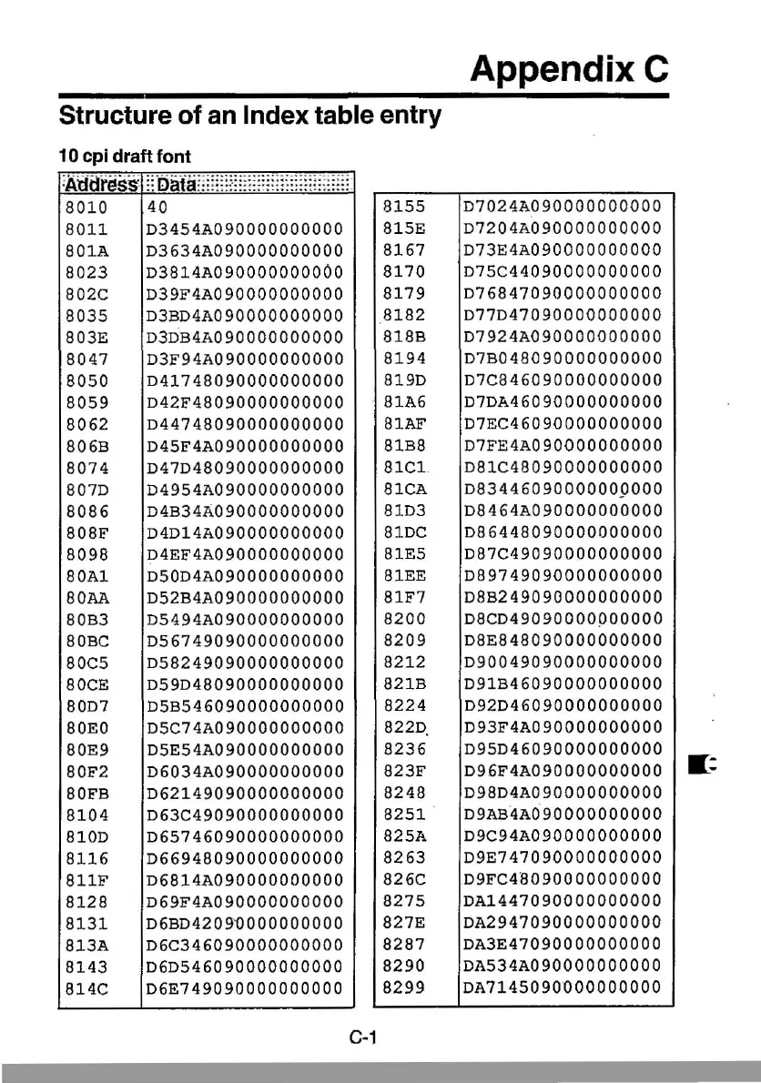 Panasonic KX-P1124 - Appendix C; Structure of an Index table entry