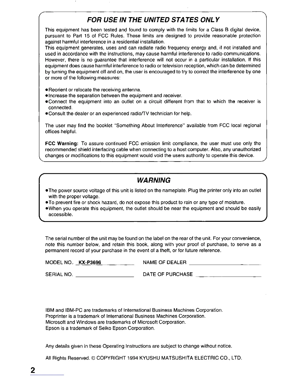 All Rights Reserved. © COPYRIGHT 1994 KYUSHU MATSUSHITA ELECTRIC CO., LTD.