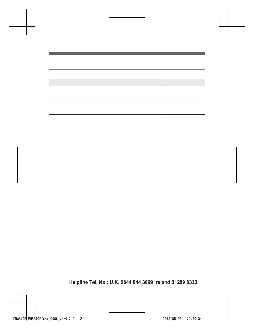 Helpline Tel. No.: U.K. 0844 844 3899 Ireland 01289 8333