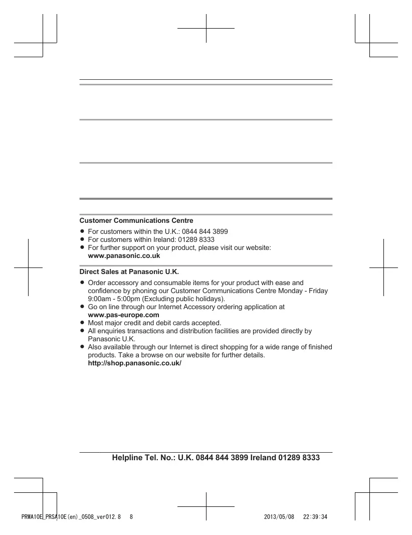 Helpline Tel. No.: U.K. 0844 844 3899 Ireland 01289 8333