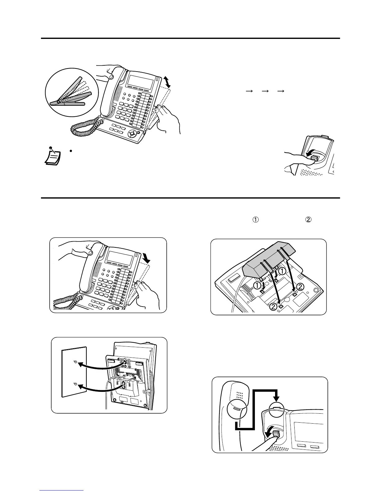 Pull down the handset hook until it locks to prevent the