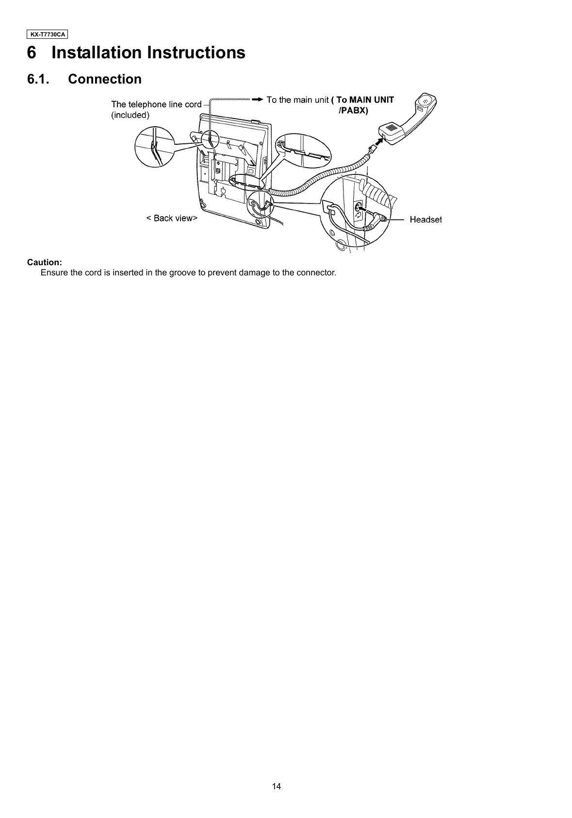 Panasonic KX-T7730CA - Installation Instructions; Connection