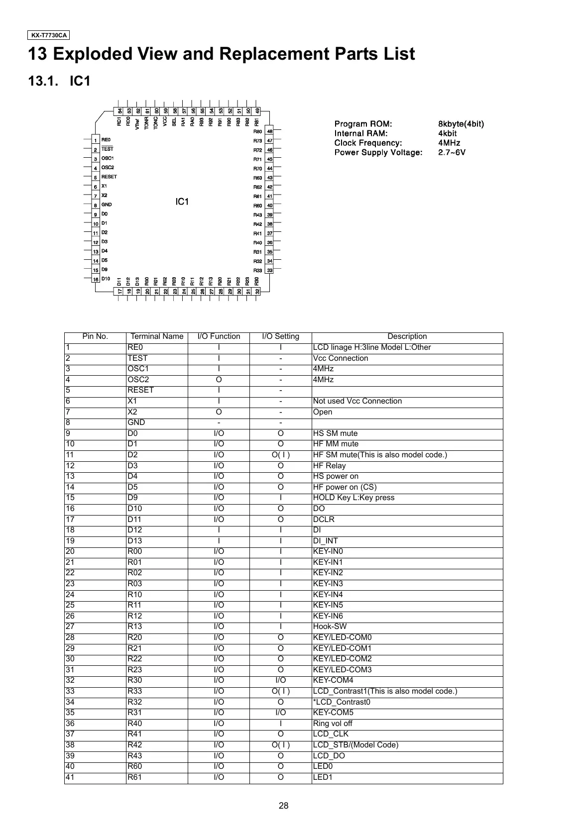 13 Exploded View and Replacement Parts List