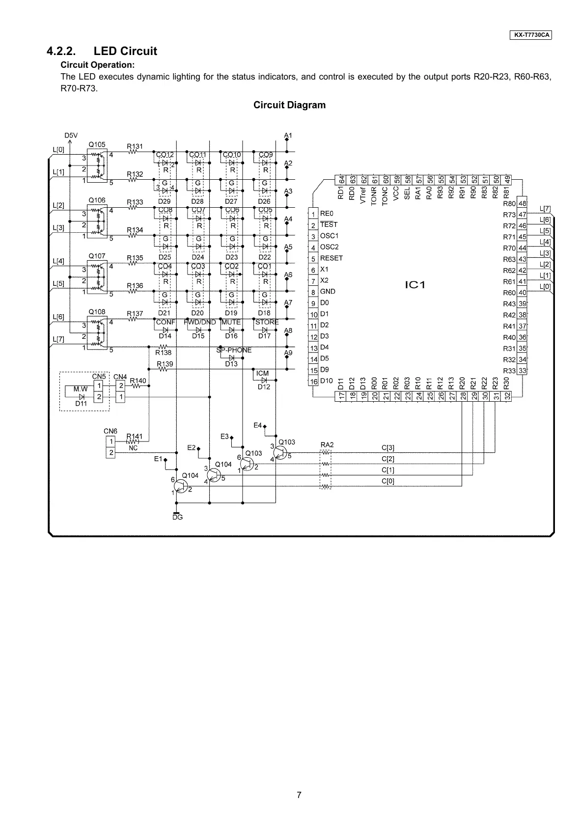 The LED executes dynamic lighting for the status indicators, and control is executed by the output ports R20-R23, R60-R63,