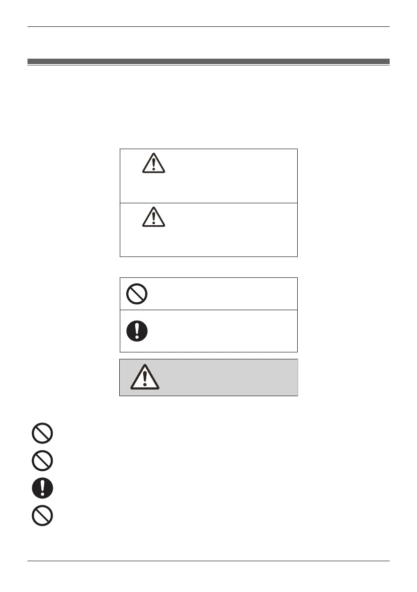 The following symbols are used to classify and describe the level of hazard and injury caused when the