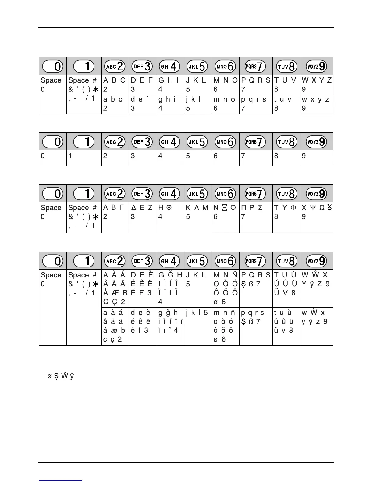 Numeric entry table (0-9)