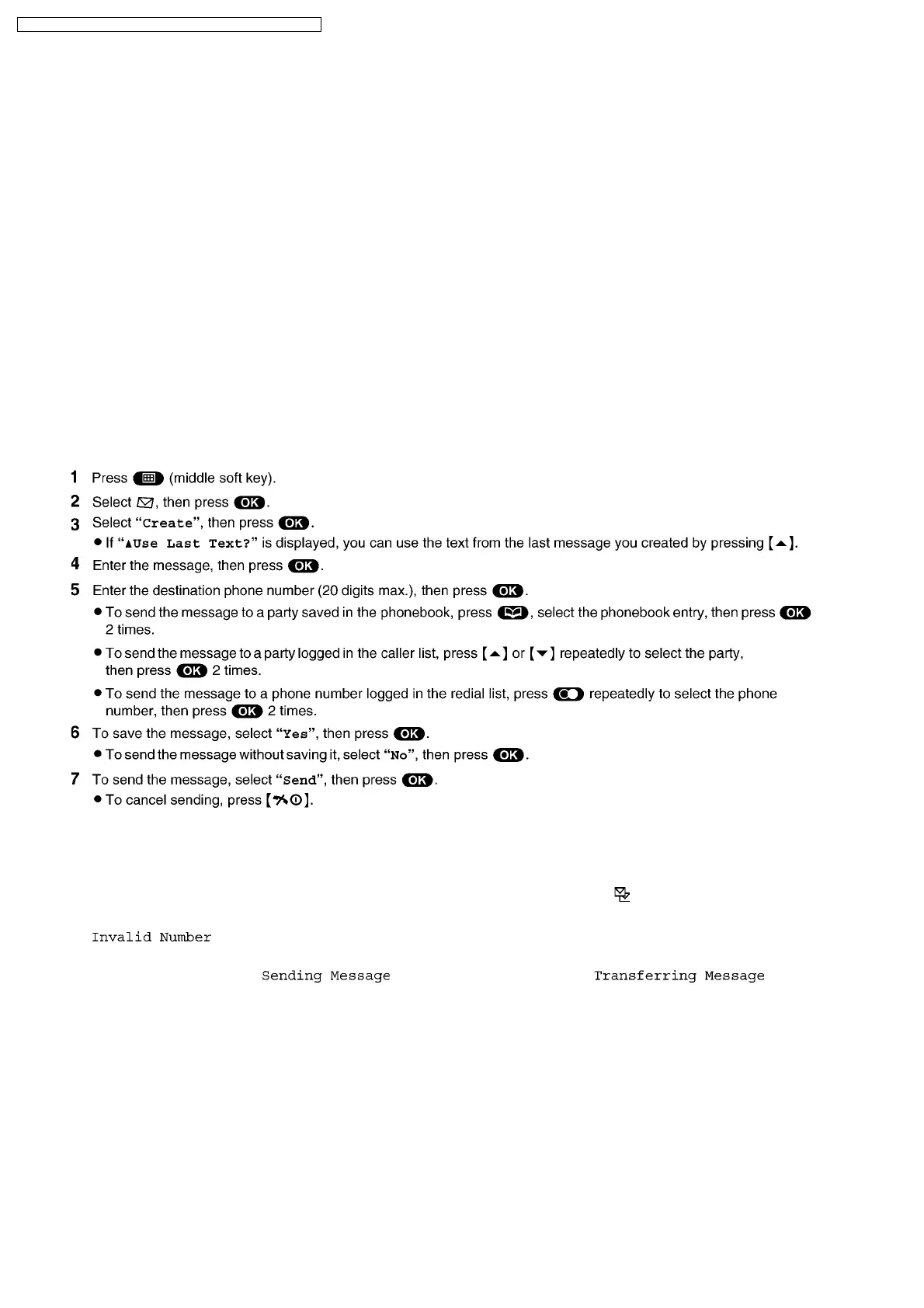 ” is displayed if you try to send a message to a phone number saved in the phonebook, caller list, or