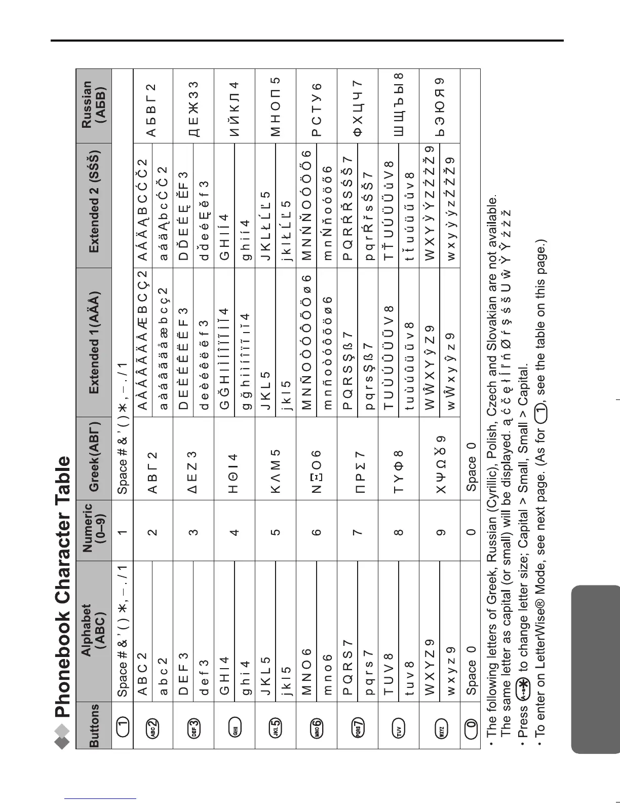 Panasonic KX-TCD515E - Character Table