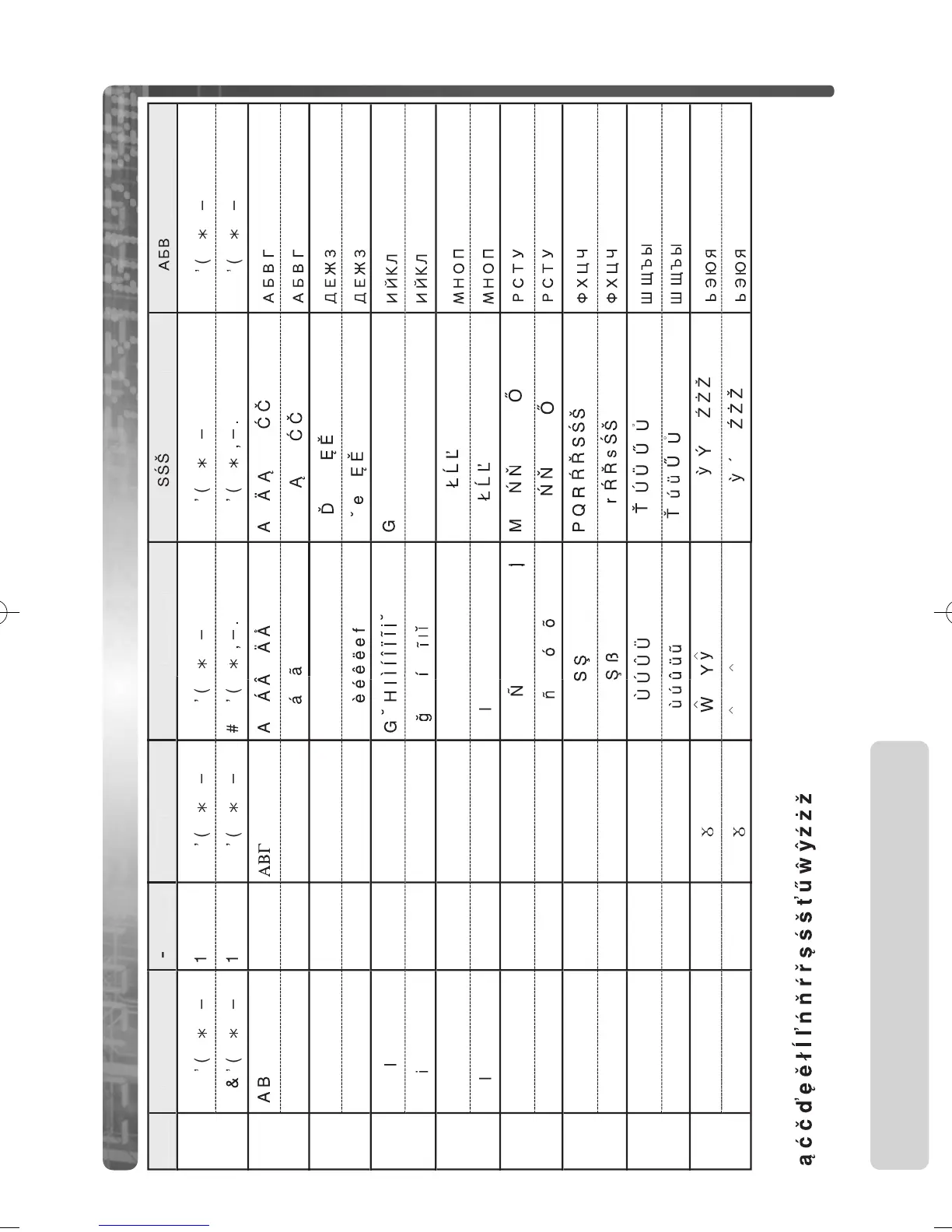 Panasonic KX-TCD775E - Phonebook Character Table