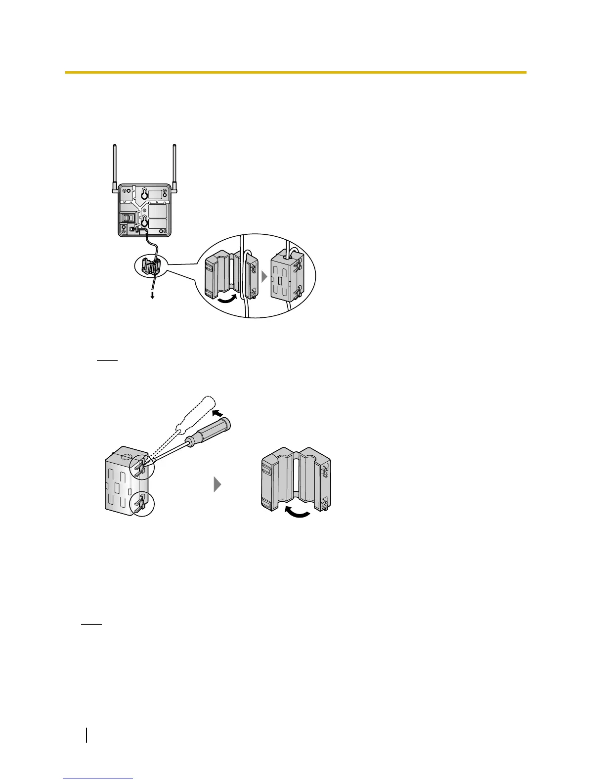 If you need to open the ferrite core, use a flathead screwdriver to unlatch the case of the ferrite core.