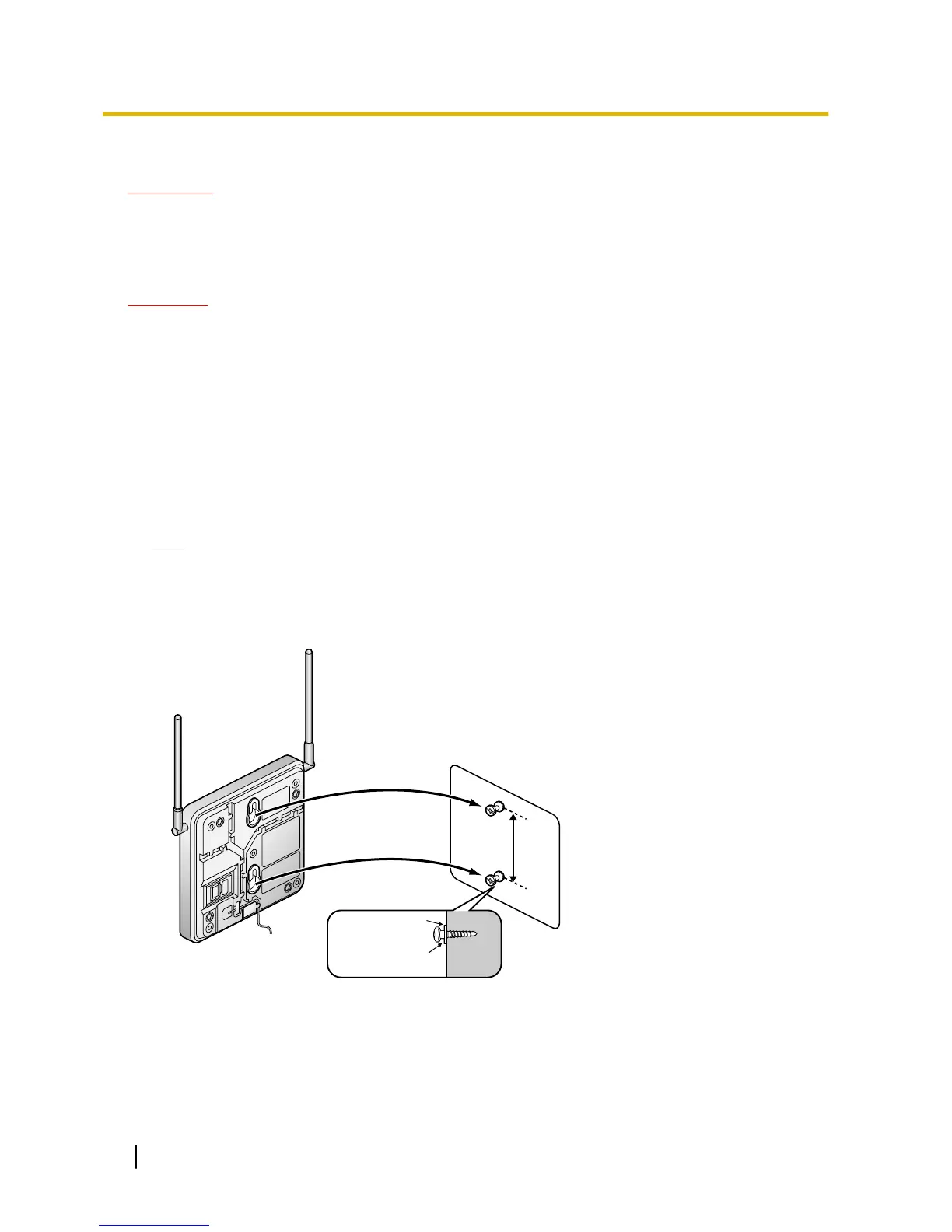 1. Place the reference for wall mounting (KX-TDA0141/KX-TDA0142) on the wall to mark the 2 screw