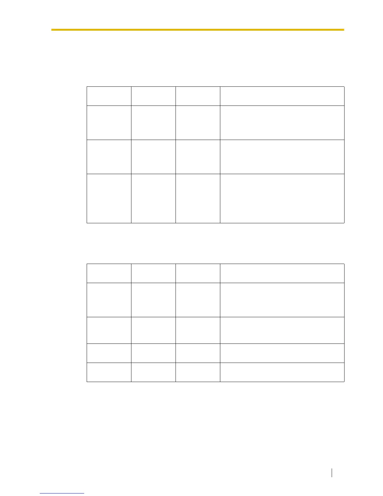 The following table is a duplication of the table used for the PBX code method.